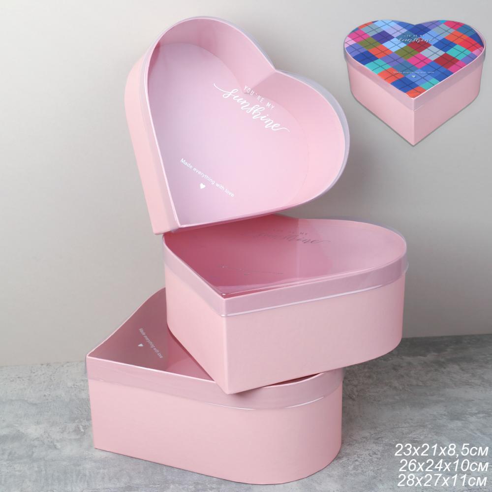 Коробка подарочная 3 штуки Сердце набор розовая / B9827 /уп 30/прозрачная крышка