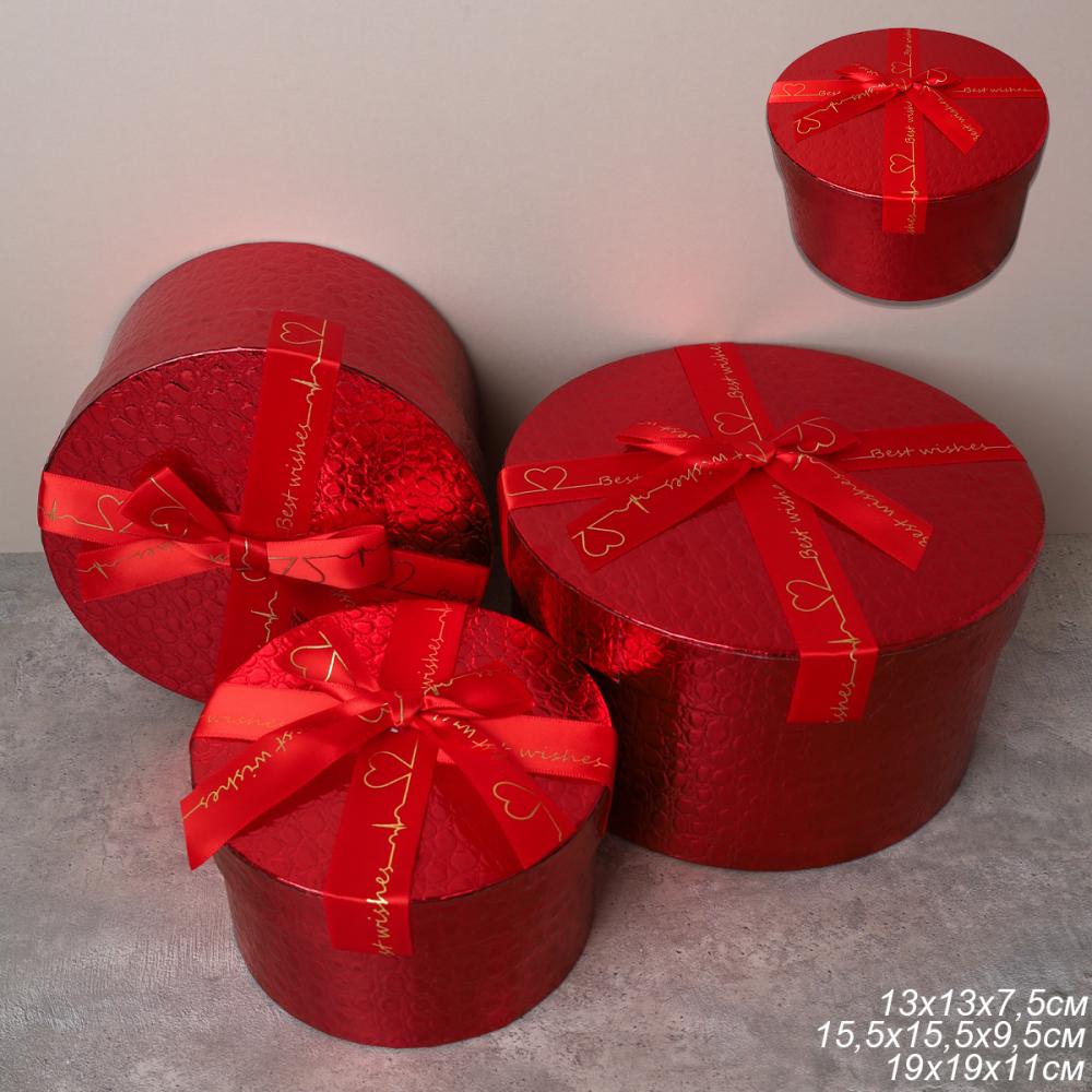 Коробка подарочная круглая 3 штуки 20х20х11 см / 3406-02 /уп 30/красная