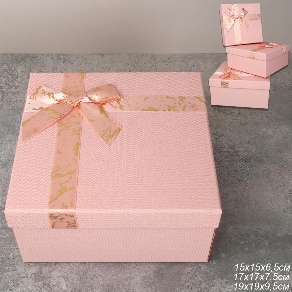 Коробка подарочная квадратная 3 штуки 19х19 см / 3403-7 /уп 36/розовая