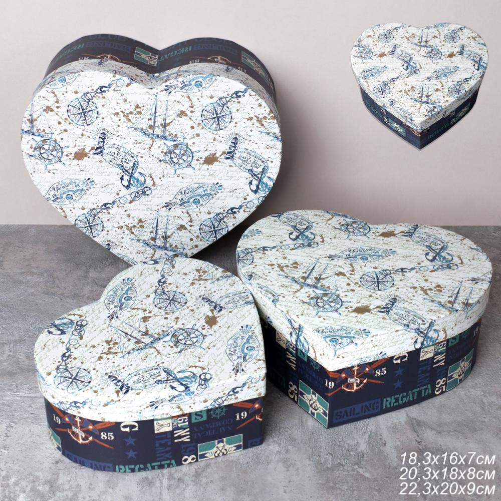 Коробка подарочная 3 штуки Сердце / 1158 /уп 24/16*18.3*7/18*20.3*8/20*22.3*9cm