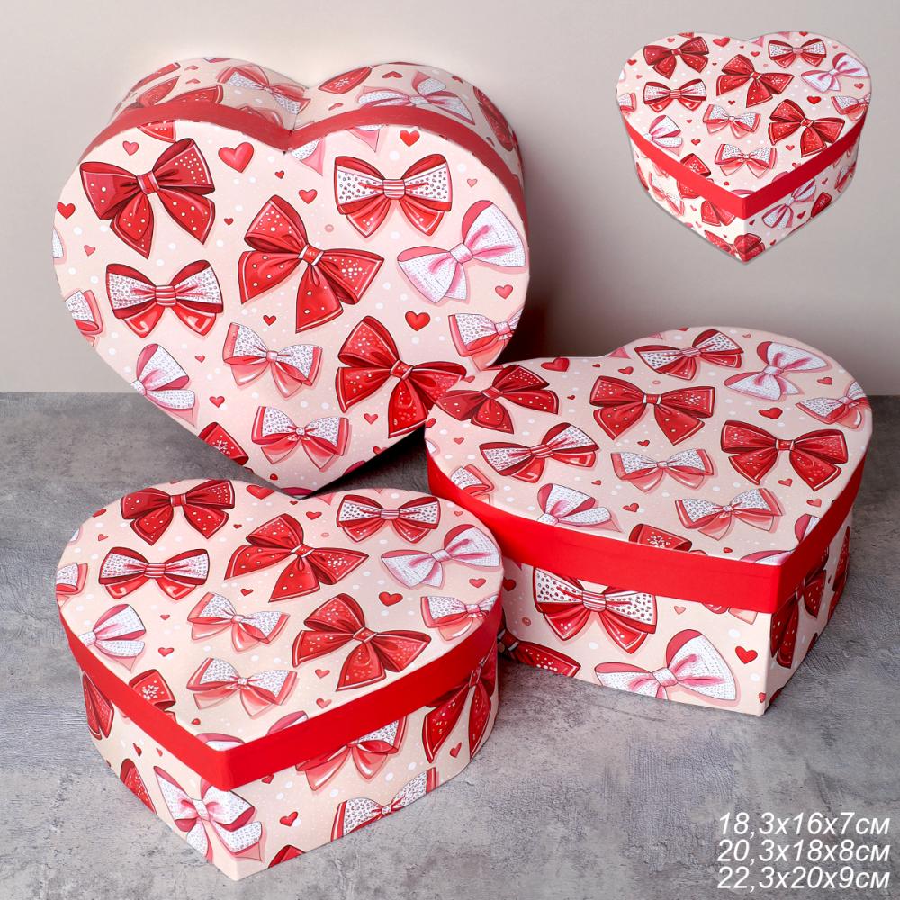 Коробка подарочная 3 штуки Сердце / 1159 /уп 24/16*18.3*7/18*20.3*8/20*22.3*9cm