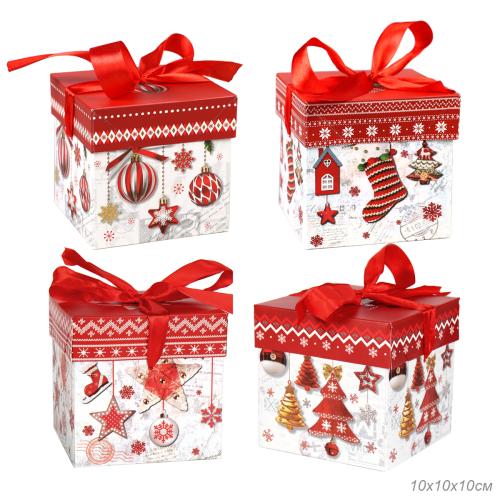 Коробка подарочная 10х10х10 см складная / 119X /уп 12/1200/Новый год