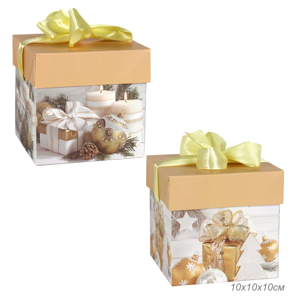 Коробка подарочная 10х10х10 см складная / 125 /уп 12/1200/Новый год