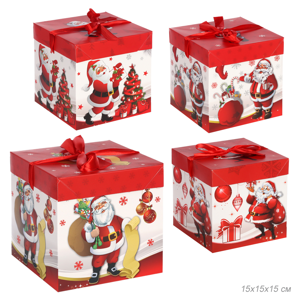 Коробка подарочная 15x15x15 см складная / 120-M /уп 12/840/Новый год