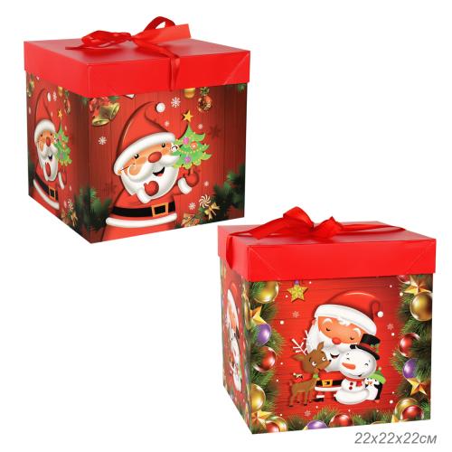 Коробка подарочная 22x22x22 см складная / 126-M /уп 12/480/Новый год