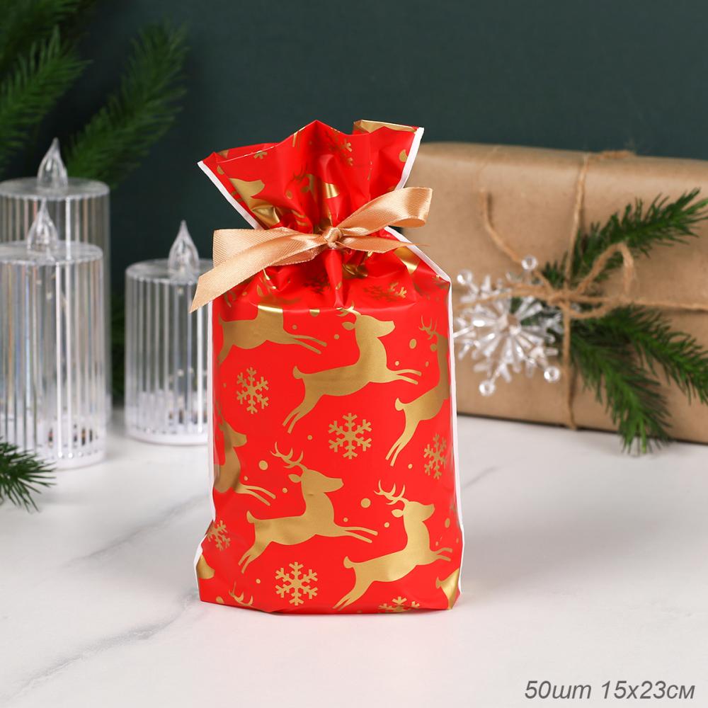 Мешочек подарочный набор 50 штук 15х23 см Новый год / YI1523-27 /уп 100/