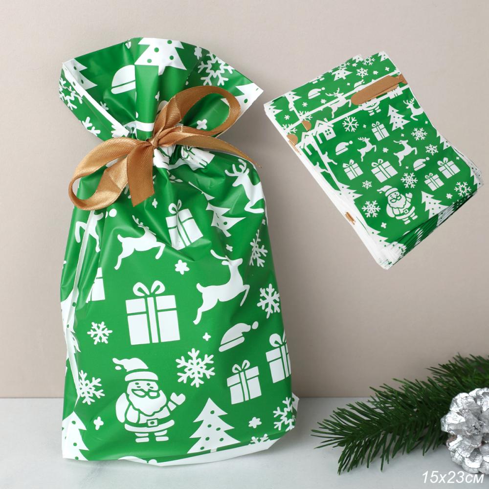 Мешочек подарочный набор 50 штук 15х23 см Новый год / YI1523-33 /уп 30/