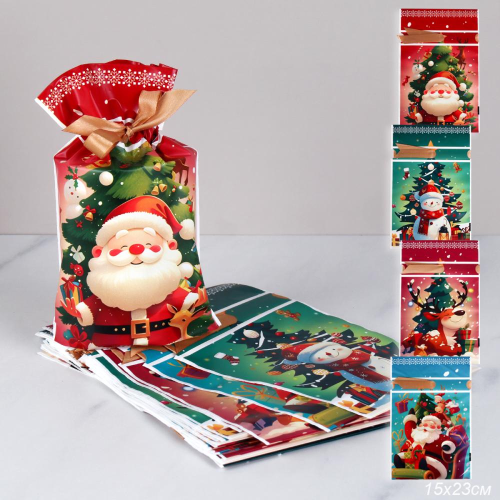 Мешочек подарочный набор 50 штук 15х23 см Новый год / YI2334-6 /уп 40/ микс