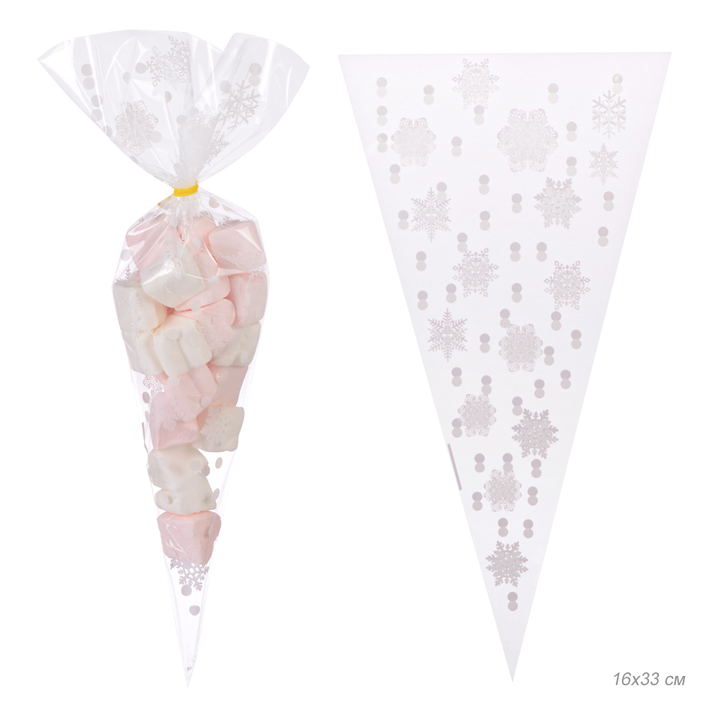 Пакет подарочный конус 150 штук 33х16 см Снежинки / NG1054 /уп 100/