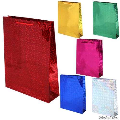 Пакет подарочный 26х34х8 голография / GW-113 /уп 12/720/плотность бумаги 128г/м2 микс