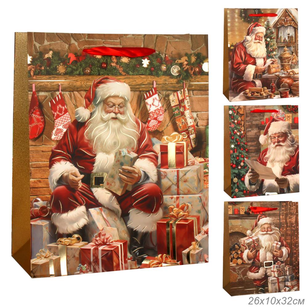 Пакет подарочный Новый год 26х32x10см / 3033-2 /уп 12/480/микс/210г/м2