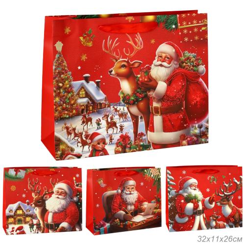 Пакет подарочный Новый год 32х26х11 / 1655-2 /уп 12/480/210г/м2 микс