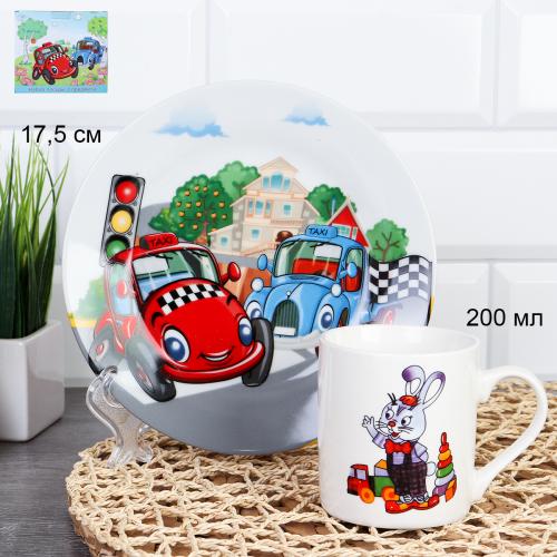 Набор посуды 2 предмета Машинки с зайчиком / C880#/DV-748