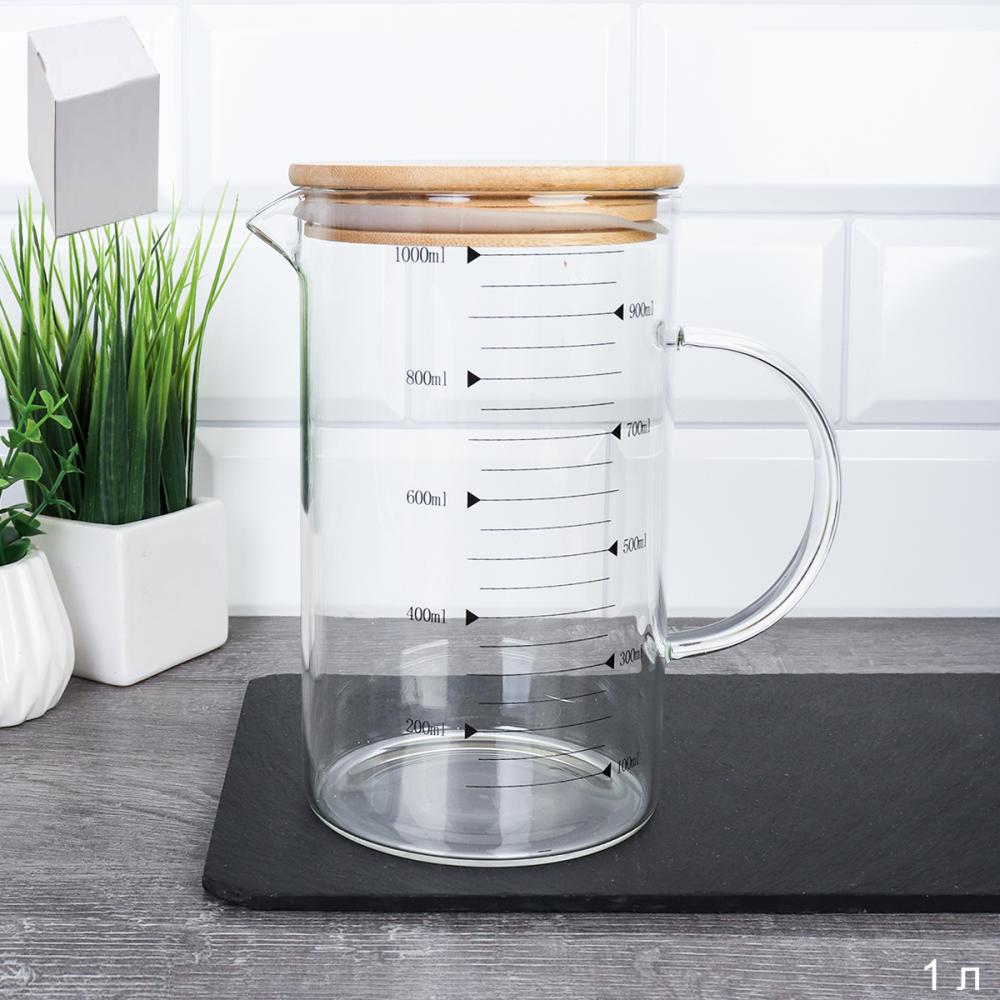 Кувшин мерный 1000 мл / LCWJ103 /уп 48/*Ц Бамбуковая крышка