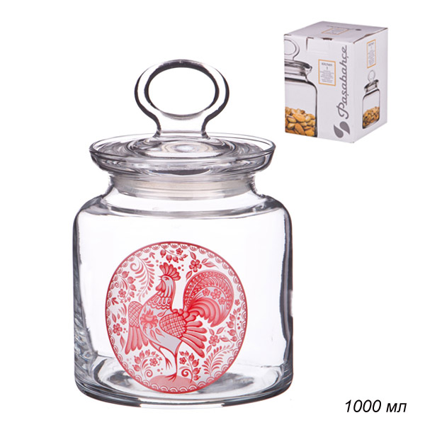 Банка для сыпучих продуктов Петух 1000 мл / 484-429 /уп 8/красный
