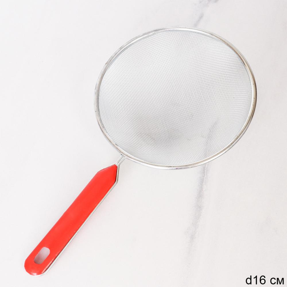 Сито с ручкой 16 см металл / H-16 /уп 300/ ручка пластик/ 0,046/*