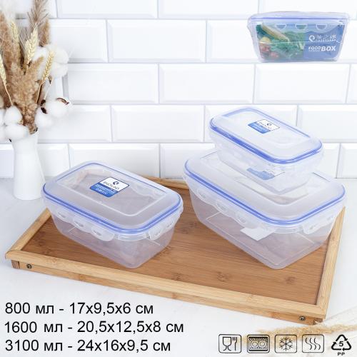 Набор пластиковых контейнеров Люкс прямоугольный 3 штуки 800/1600/3100 мл / CP3034B /уп 24/ ДОП СКИДКА НА КОРОБ 3%