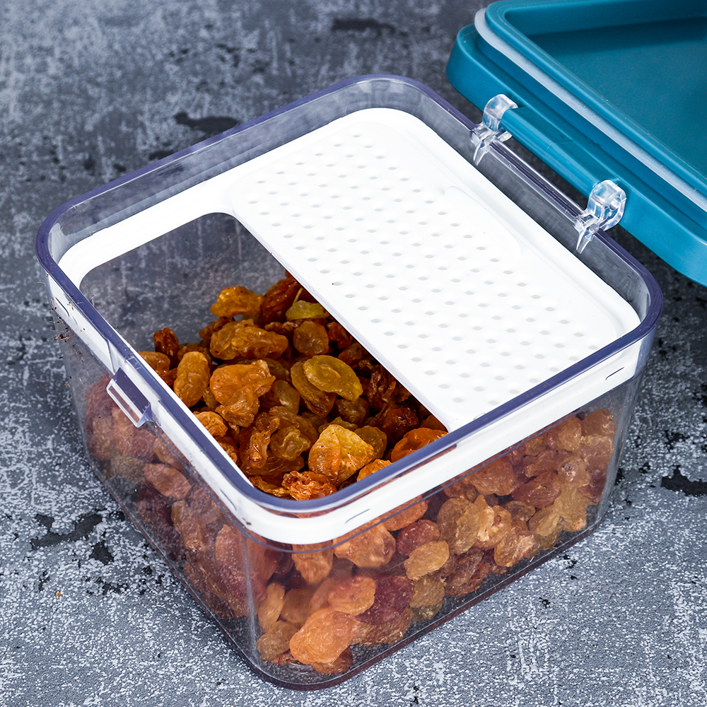 Удобная ёмкость закрывается надежной герметичной, крышкой с защелками и имеет водонепроницаемый силиконовый уплотнитель. Сетчатая перегородка практична в использовании, позволяет с легкостью использовать сыпучие продукты, можно вынуть при ненадобности. Компактная красивая посуда незаменима для хранения продуктов, для пикника, похода и приготовления пищи для правильного питания ПП. Можно хранить в холодильнике или морозильной камере.