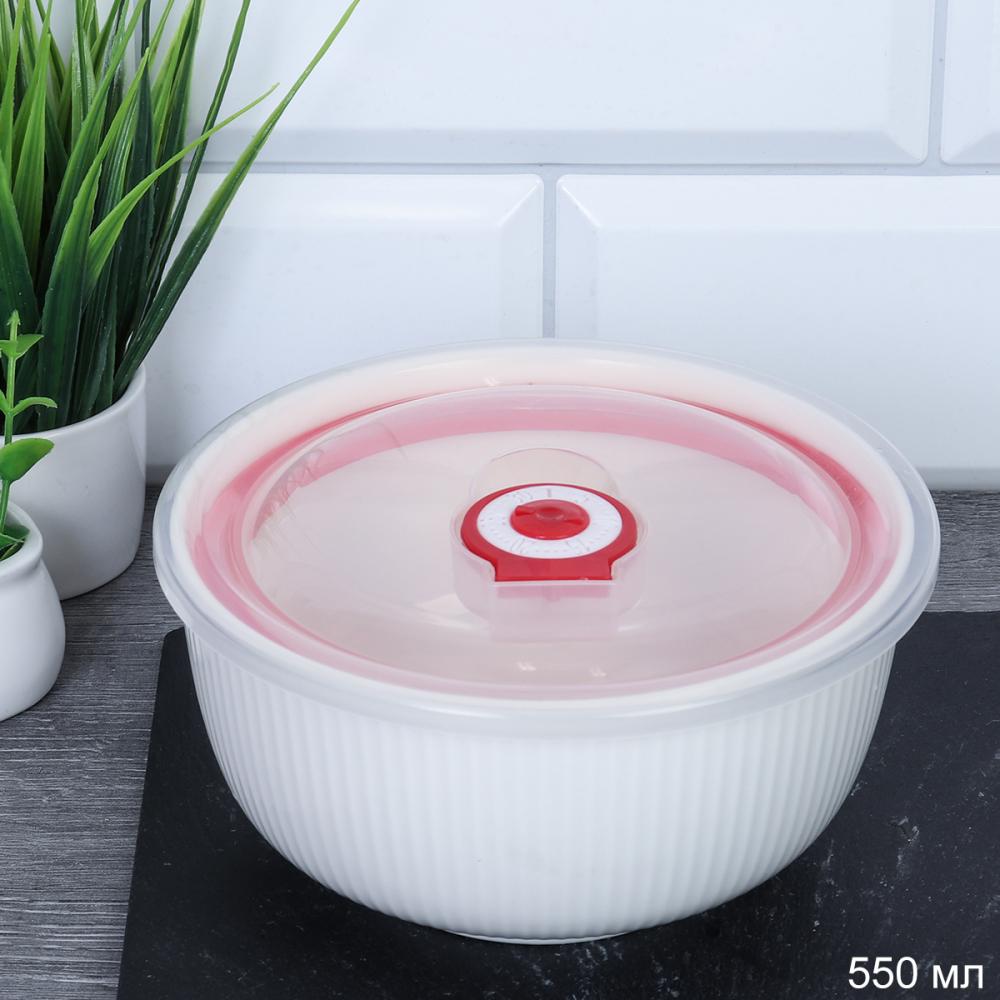 Контейнер салатник 550 мл крышка с клапаном Вертикаль / S-181 /уп 36/ Фарфор