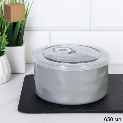 Контейнер салатник 650 мл крышка с клапаном / WRF-327 /уп 48/ Фарфор серый