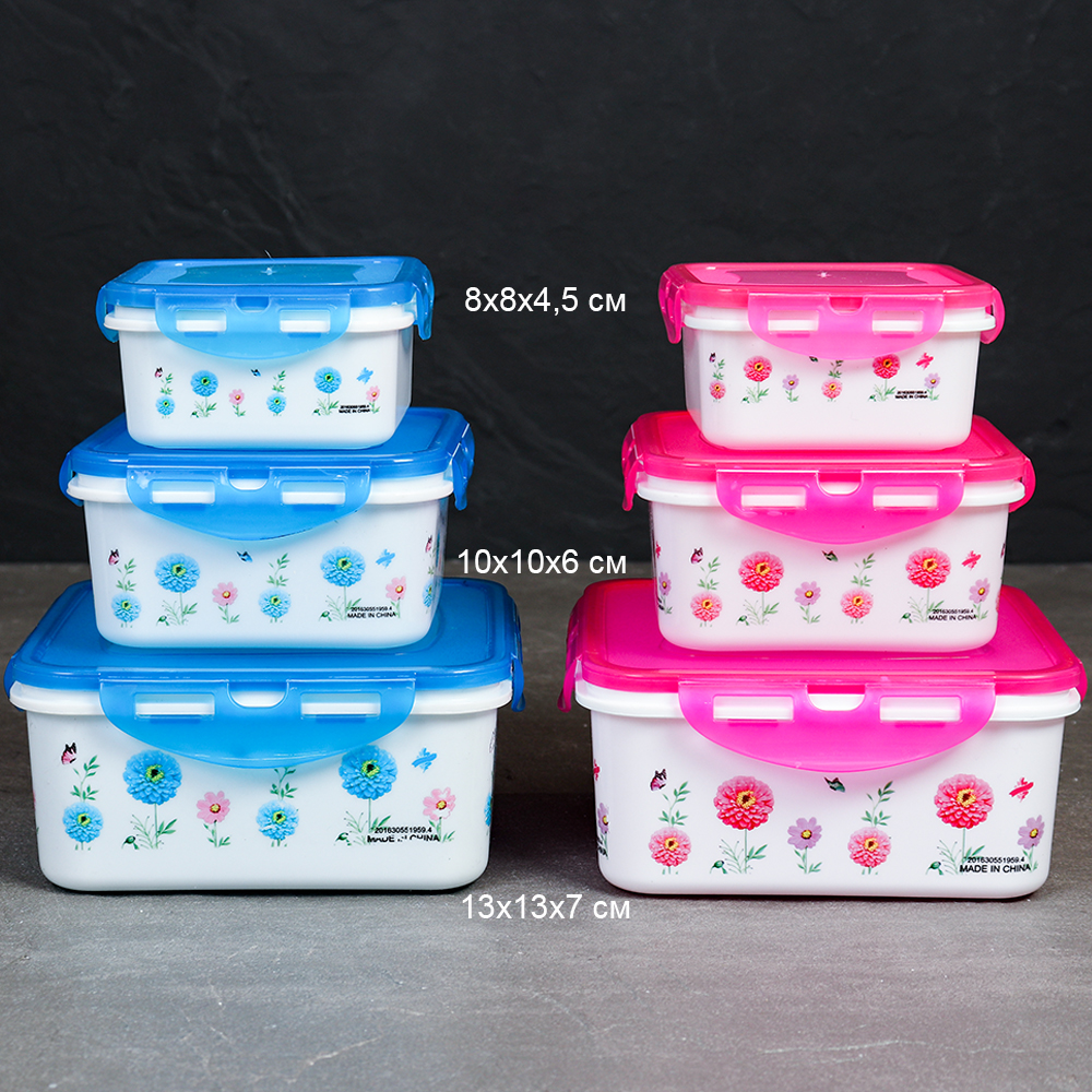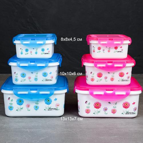 Салатник квадратный 3 штуки с крышками / 131 /уп 96/ 350, 800, 1300 мл