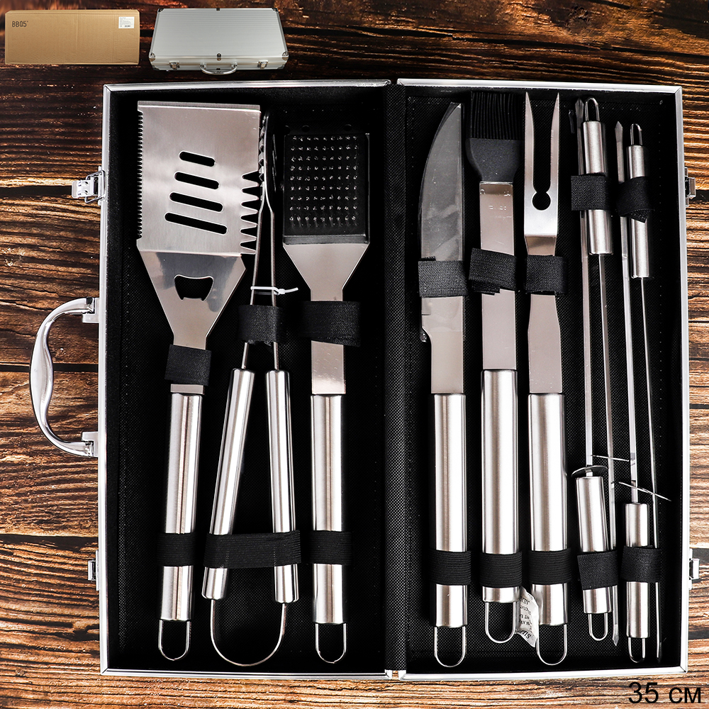 Набор приборов для гриля, барбекю и мангала. Наборы для барбекю — это незаменимые помощники в приготовлении вкуснейшей еды на свежем воздухе. Набор для барбекю – это не только полезная вещь на даче, но и прекрасный презент. Такой подарочный набор – это всегда стильно и практично