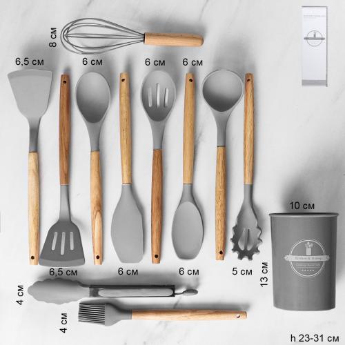 Кухонный набор силиконовый 12 предметов в подставке / KNA-139 /уп 16/ 0,78/ 0,69/ Темно-Серый