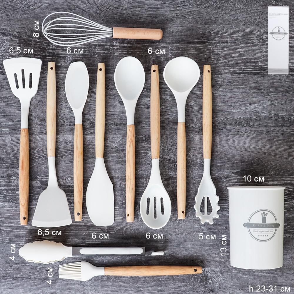 Кухонный набор силиконовый 12 предметов в подставке / KNA-140 /уп 16/ 0,78/ 0,69/ Молочный
