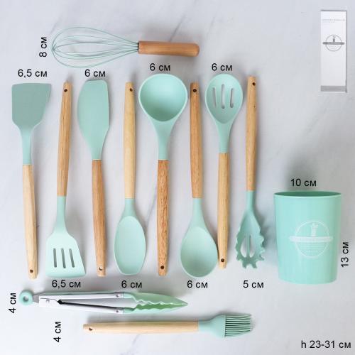 Кухонный набор силиконовый 12 предметов в подставке / NA-141 /уп 16/ 0,78/ 0,69/ Бирюзовый