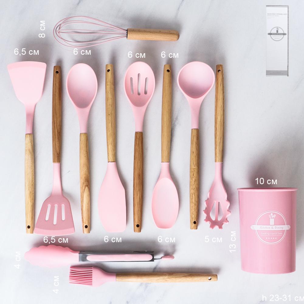 Кухонный набор силиконовый 12 предметов в подставке / VBA-142 /уп 16/ 0,78/ 0,69/ Розовый