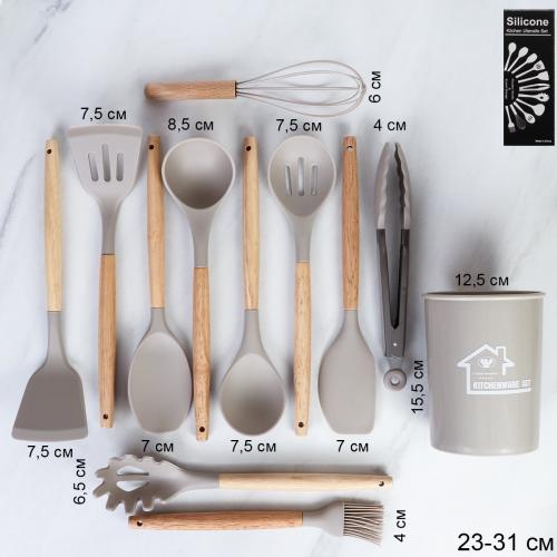 Кухонный набор силиконовый 12 предметов в подставке / ZPA-102 /уп 16/ 1,029/ 0,892/ Хаки