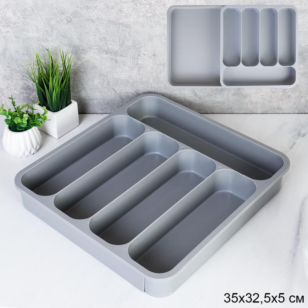 Лоток для столовых приборов раздвижной - идеальное решение для организации кухонного ящика. Подходит для хранения ложек, вилок, ножей и дргуих кухонных принадлежностей.