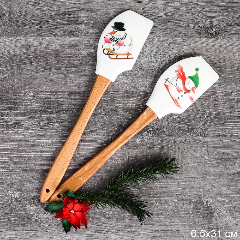 Лопатка кулинарная силиконовая 31х6,5 см с деревянной ручкой / H-211 /уп 130/ Новогодняя/ 0,071/ 0,044