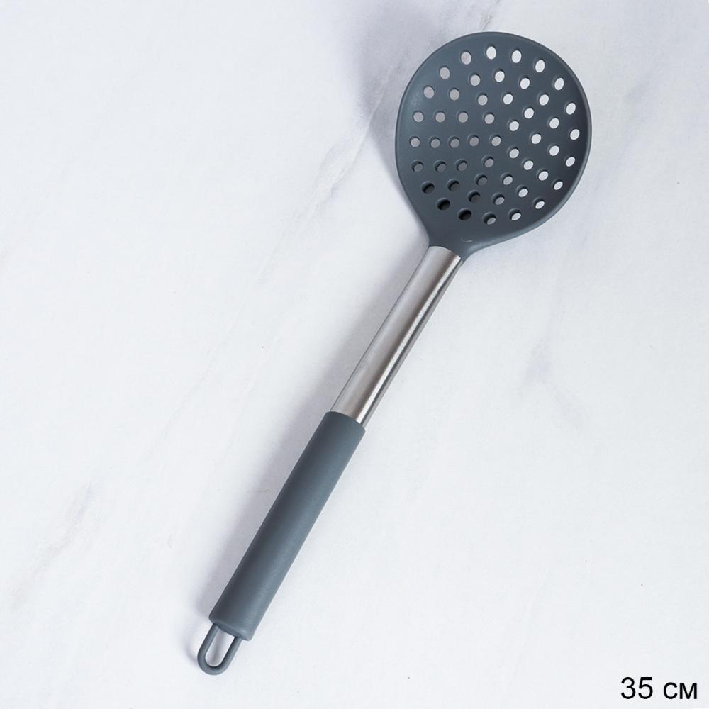 Шумовка силиконовая с металлической ручкой 34 см "Грей" / WRF-105 /уп 400/
