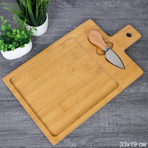 Доска разделочная и нож для сыра 19х33 см / WE-600 /уп 48/ дерево