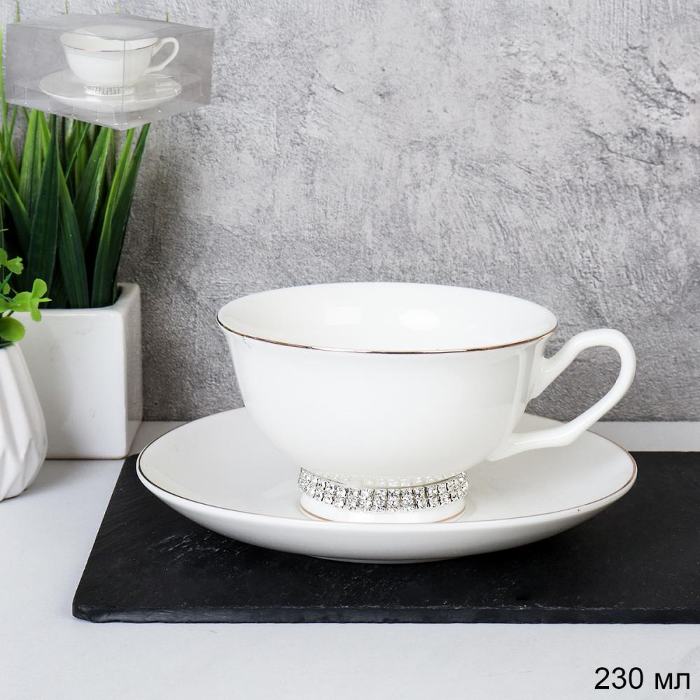 Чайная пара 2 предмета 230 мл ПАРА СТРАЗЫ Гифт прозрач / GC57-230 WHITE /уп 48/ костяной фарфор