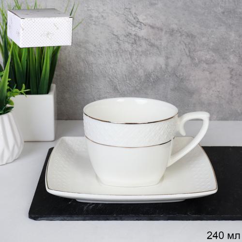 Чайная пара 2 предмета 240 мл ПАРА GA9 /уп 48/ костяной фарфор в подарочной упаковке