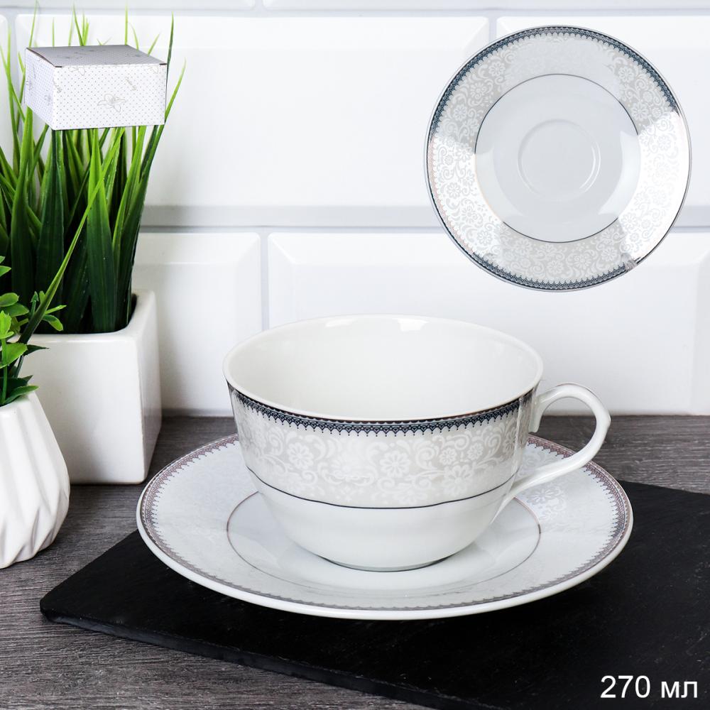 Чайная пара 2 предмета 270 мл тонкостенный Кружево/ LY-2133/ в подарочной упаковке