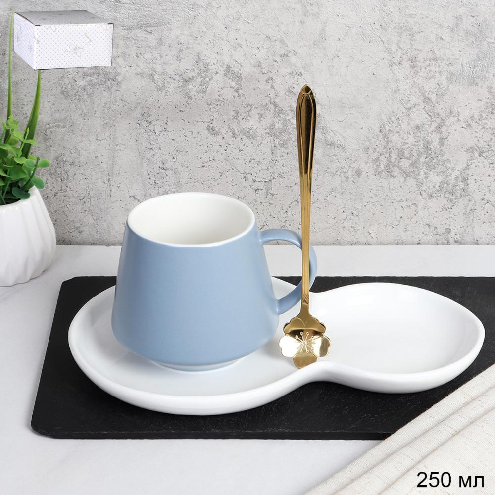 Чайная пара 3 предмета 250 мл с ложкой / FED-119 / Голубая