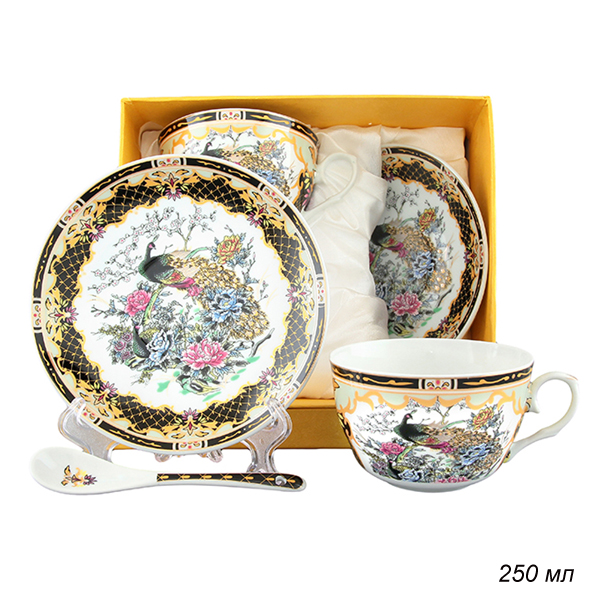 Чайная пара 4 предмета 250 мл Павлин на золоте / 730493 /уп 12/ п/у с ложкой
