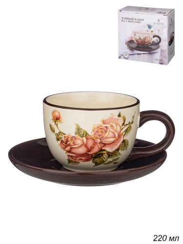 Чайный набор 2 предмета 220 мл Корейская роза / 358-1705 /уп 36/