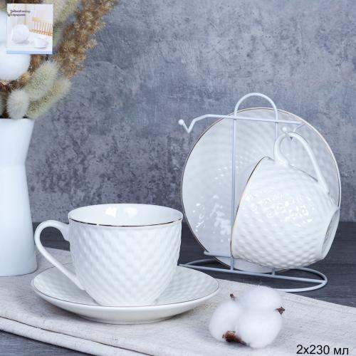 Чайный набор 4 предмета 230 мл на металл подставке / TC69M-4M 230 /уп 18/ костяной