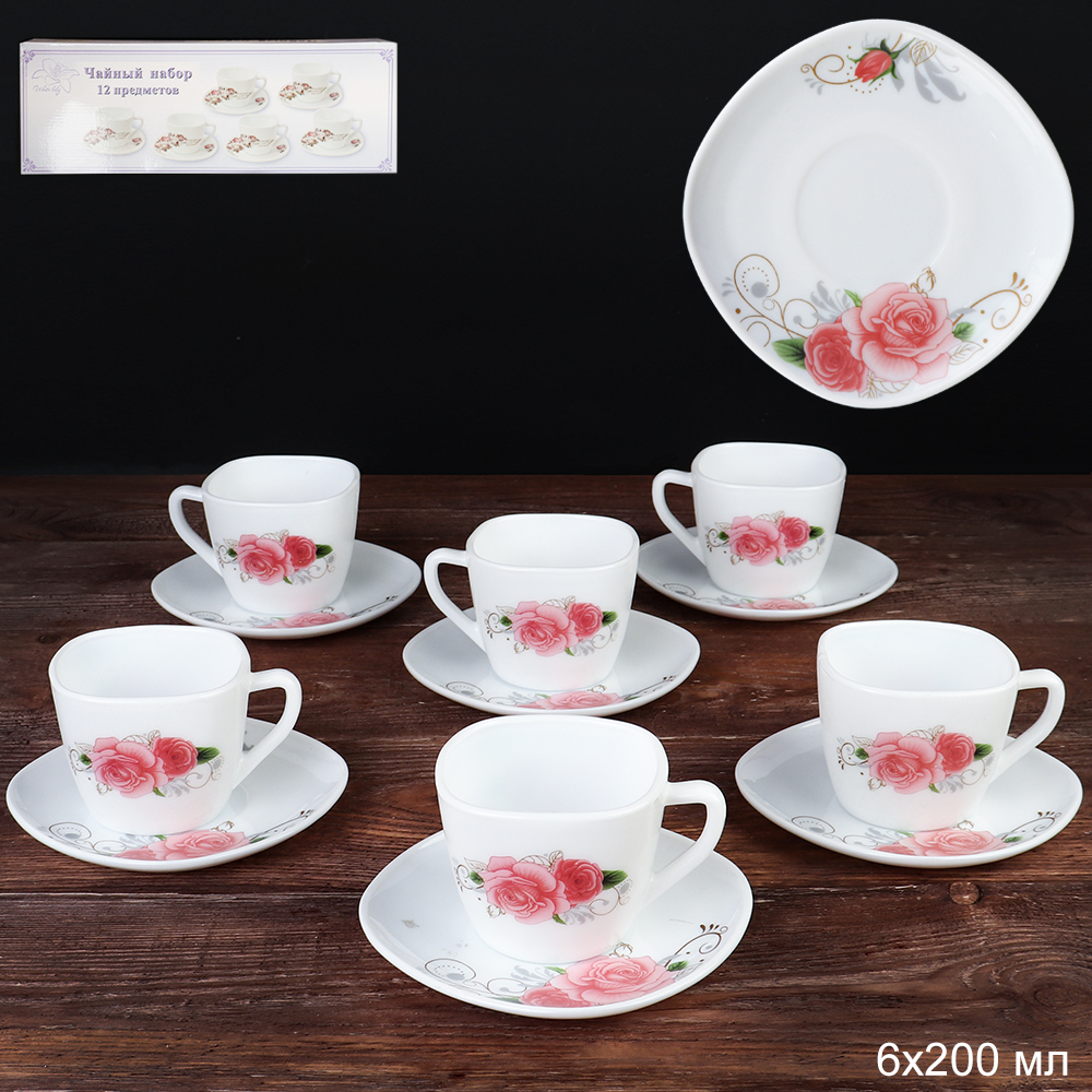 Чайный набор 12 предметов 250 мл квадратная / FXB220/12 (6795) /уп 8/ Розы с завитками