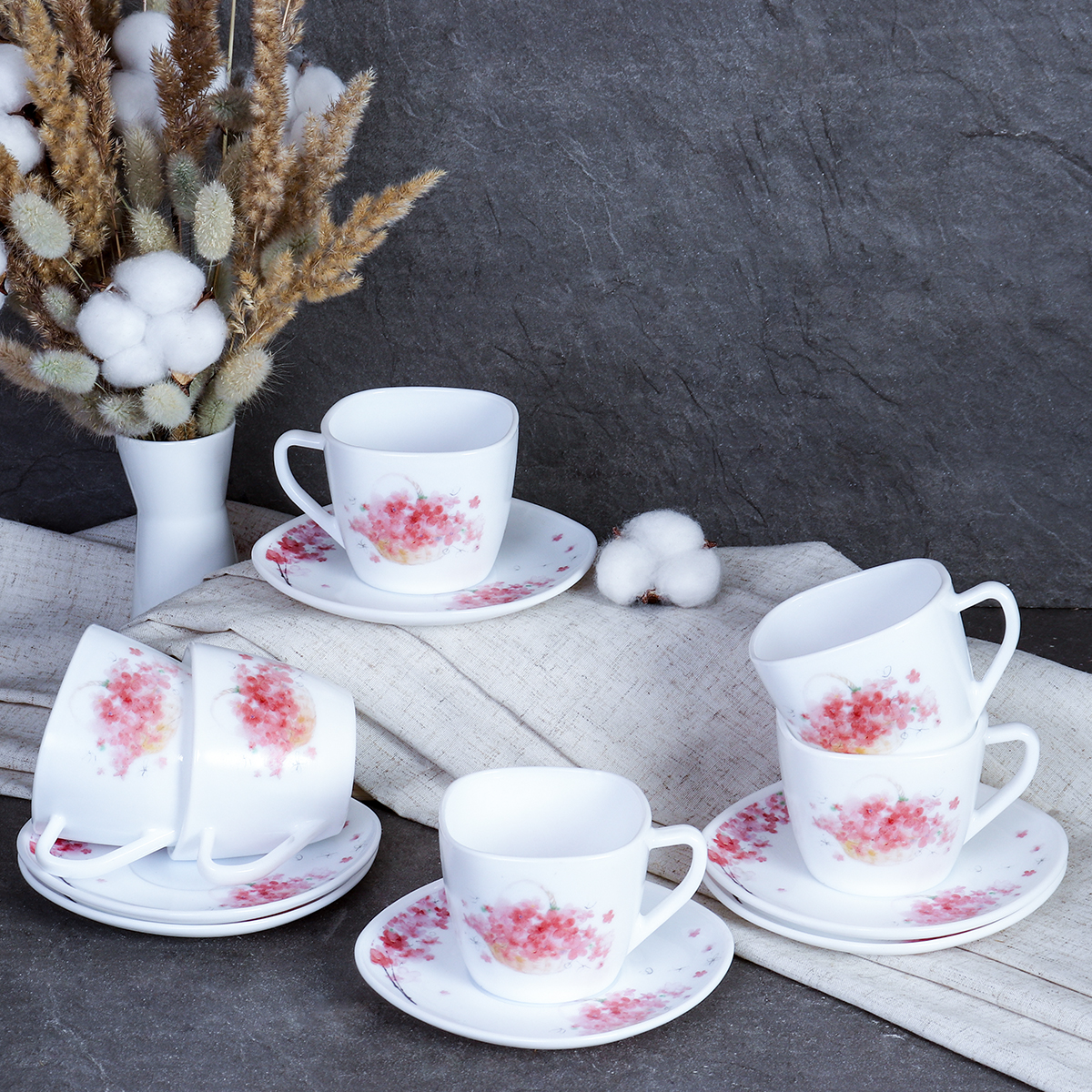 Чайный набор 12 предметов 250 мл квадратная / FXB220/12 (7261) уп 8/ Букет в корзине