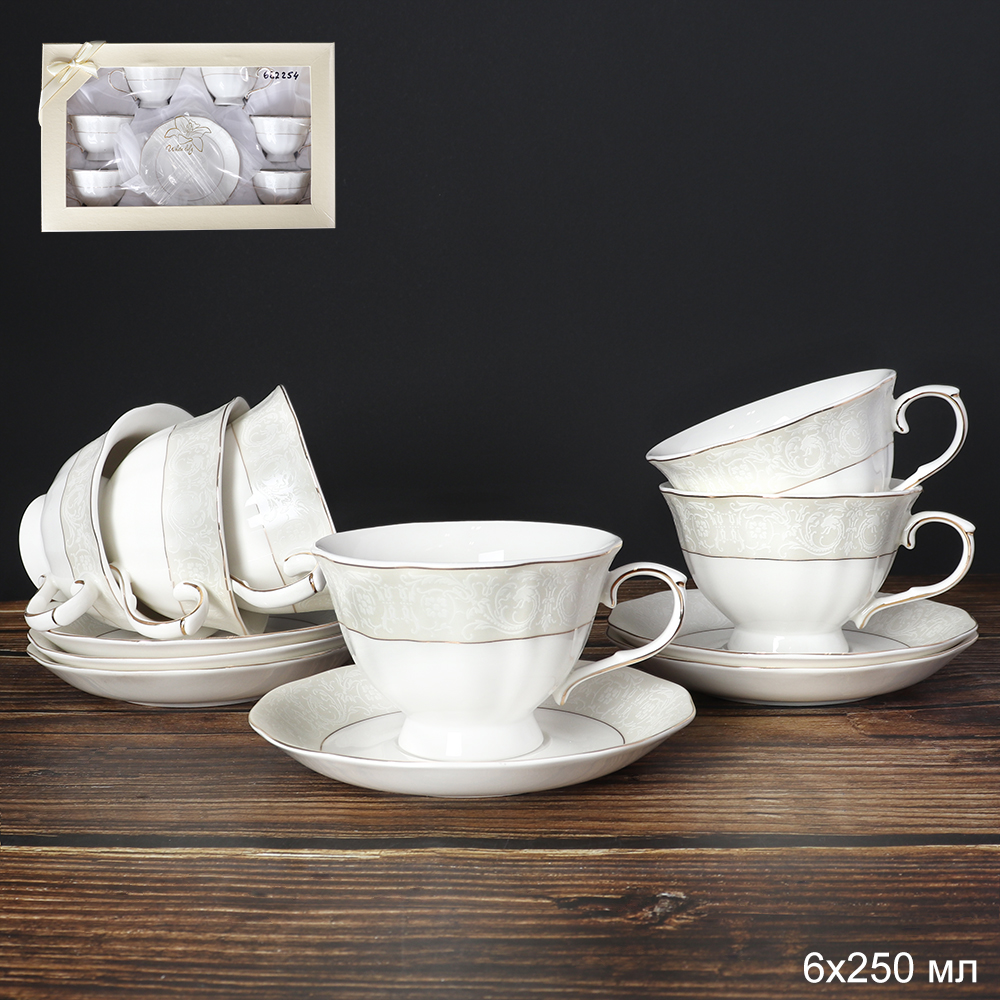 Чайный набор 12 предметов 250 мл на ножке / RS/12-FY21001 /уп 8/ Завитки