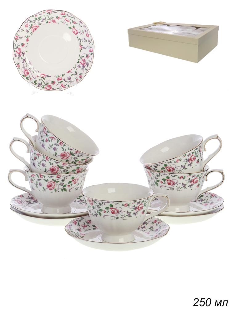 Чайный набор 12 предметов 250 мл на ножке / RS/12-PS-203001 /уп 8/ Роза по канту