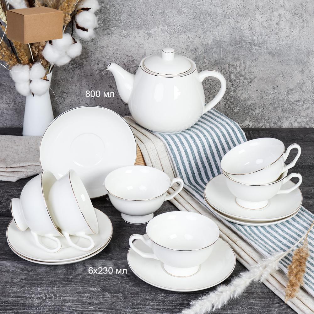 Чайный набор 13 предметов 230 мл / GC57-12G(БЕЛЫЙ) /уп 8/ костяной фарфор