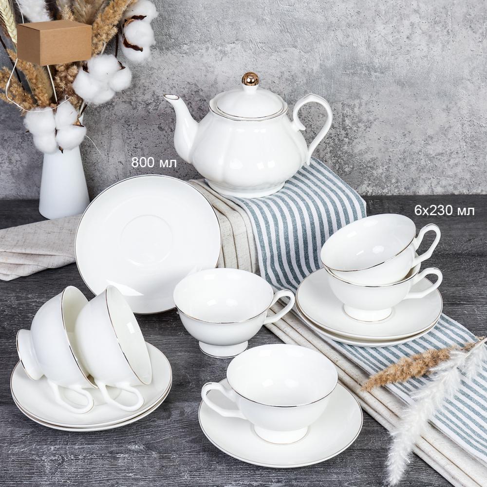 Чайный набор 13 предметов 230 мл / GC57-12G WHITE /уп 8/ костяной фарфор