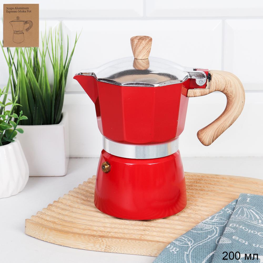 Кофеварка гейзерная 150 мл 3 чашки Красная / RX150-540 /уп 36/