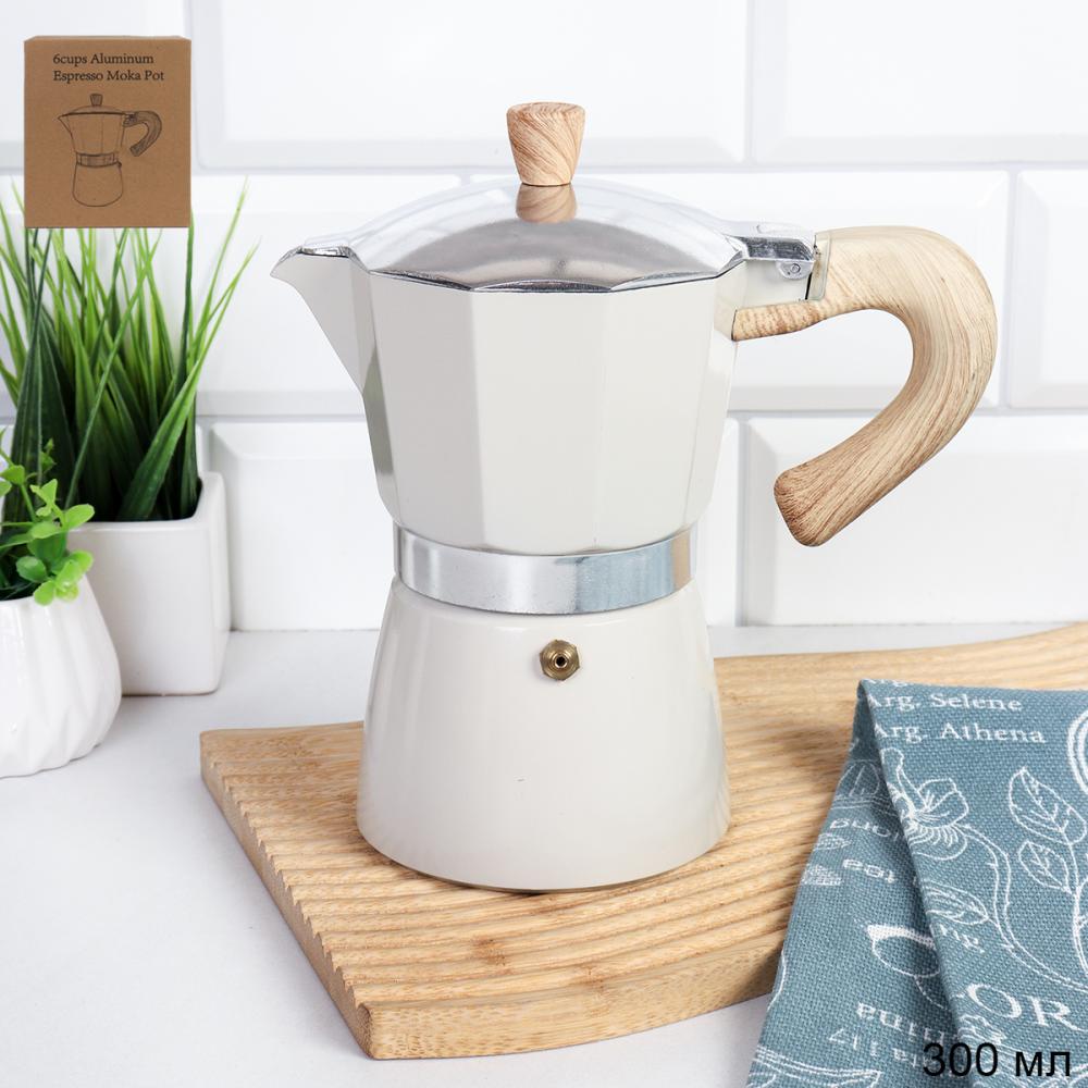 Кофеварка гейзерная 300 мл 6 чашек Белая / DX300-541 /уп 36/